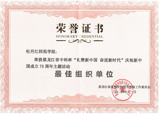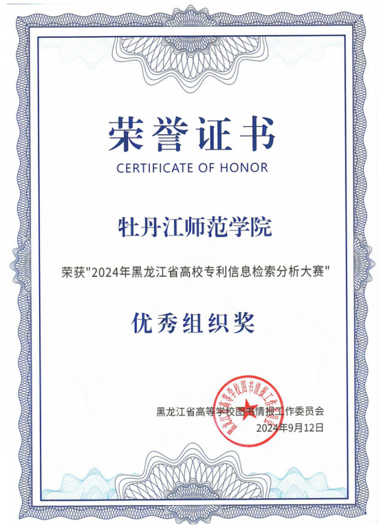 近日,我校在黑龙江省图书情报工作委员会举办的全省大学生专利检索大赛中获得优秀组织奖,在“礼赞新中国 奋进新时代”庆祝中华人民共和国成立75周年主题阅读活动中获得最佳组织奖,9名图书馆馆员获得个人奖。